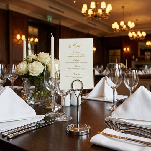 View full detailsDisplay table numbers, menu cards, price tags, or reserved signs with elegance using this stainless steel card holder. Designed with a sturdy round...