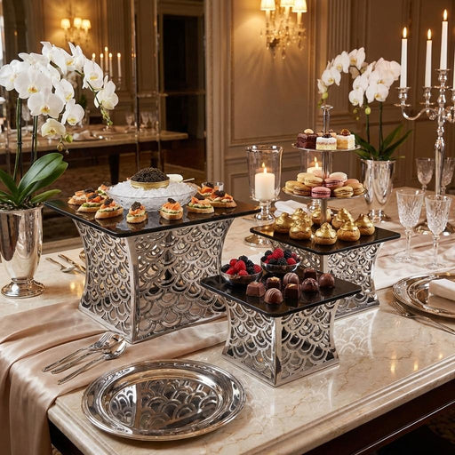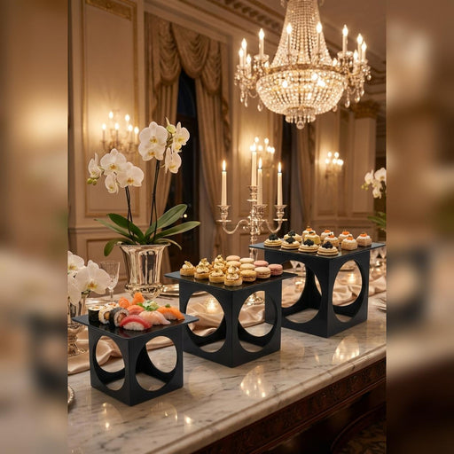 View full detailsElevate your buffet presentation with this 3-piece luxury buffet stand set, designed to add height, elegance, and visual impact to any food display...
