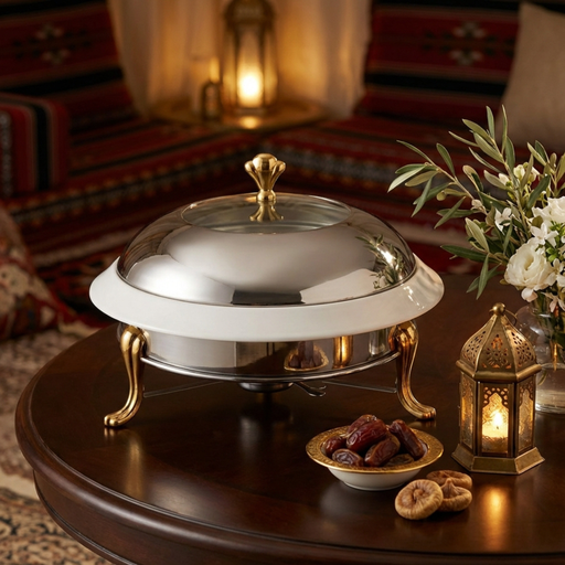 View full detailsDesigned for elegant buffet and traditional food presentation, this handcrafted VIP round Ouzi & Halwa platter brings sophistication and luxur...