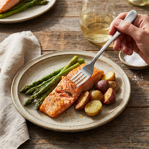 لتناول المعكرونة بالشوكة والملعقة، لف كمية صغيرة من المعكرونة حول الشوكة باستخدام الملعقة كدليل. ارفع الشوكة إلى فمك واستمتع بكل لقمة لذيذة دون فوضى.