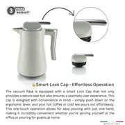 The flask is ergonomically designed with a comfortable, easy-to-grip handle, making pouring effortless. Its innovative smart lock cap guarantees a secure closure to prevent leaks, while the precision-engineered drop-free spout ensures a smooth, spill-proof pour every time. Whether you're keeping your coffee hot for 12 hours or your iced tea cold for 24 hours, this flask is designed to meet all your beverage needs.